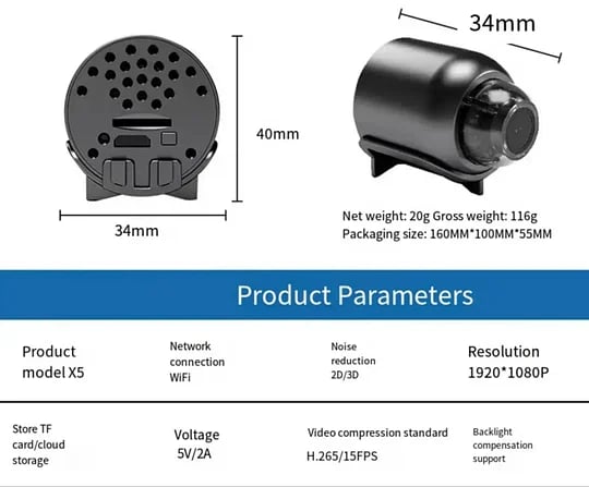 At just 2 x 2 x 2.5 cm, the X5 blends in anywhere—small enough for covert monitoring, subtle enough for home decor or workspace use.