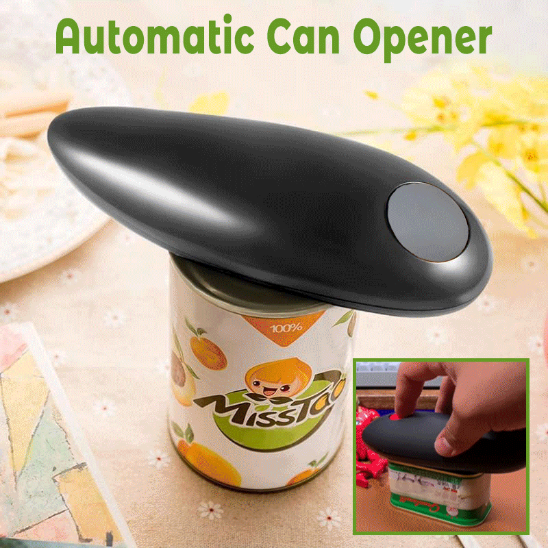 Two taps to open any cans with our electric can opener. Push the button to turn it on. It cuts cans 360° along the lid. Push the button again to stop.
