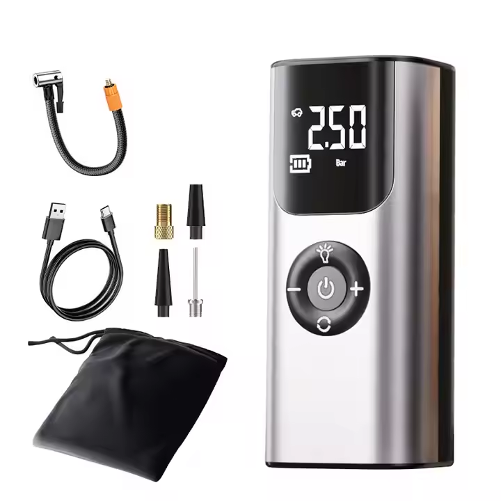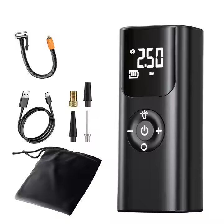 (Wireless + Wired) Portable mini electric tire pump, suitable for inflating car, motorcycle, bicycle tires and sports equipment, and can also be used as a mobile power supply to power mobile phones