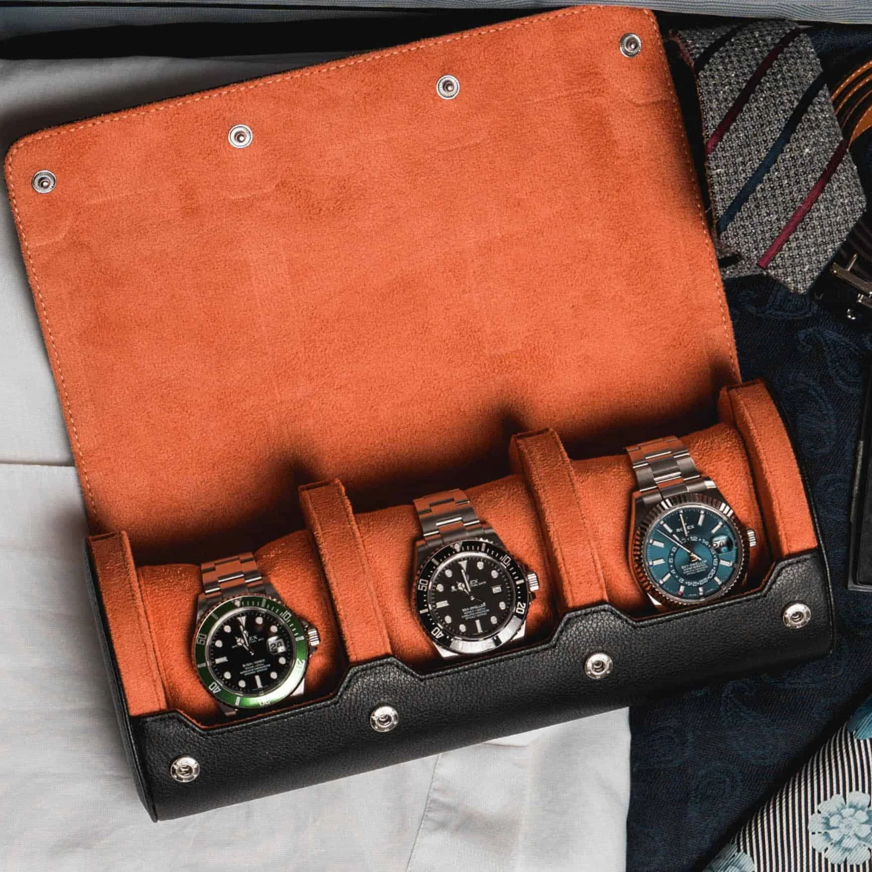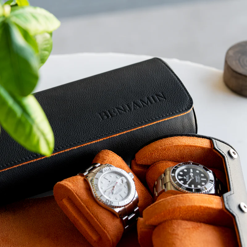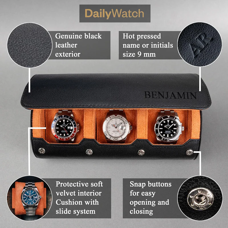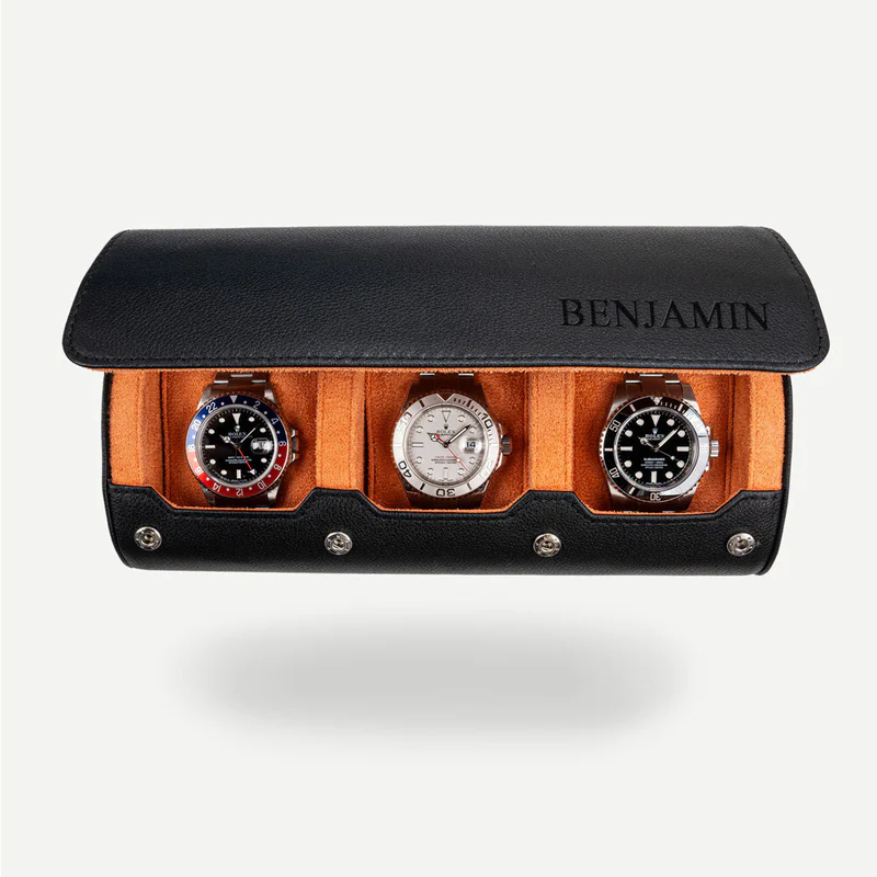 Personalized Watch Roll Black Orange (Free Shipping + Cash on Delivery to Ghana)