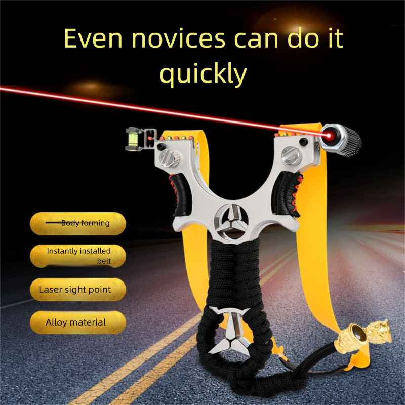 The slingshot is equipped with 2 pieces of 1 mm thick flat belts for high strength. Flat rubber band for quick change. The lightweight frame can be used for a long time without fatigue.