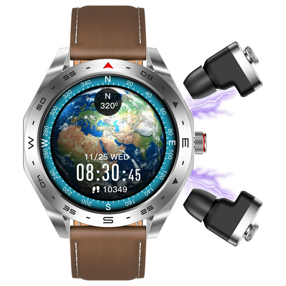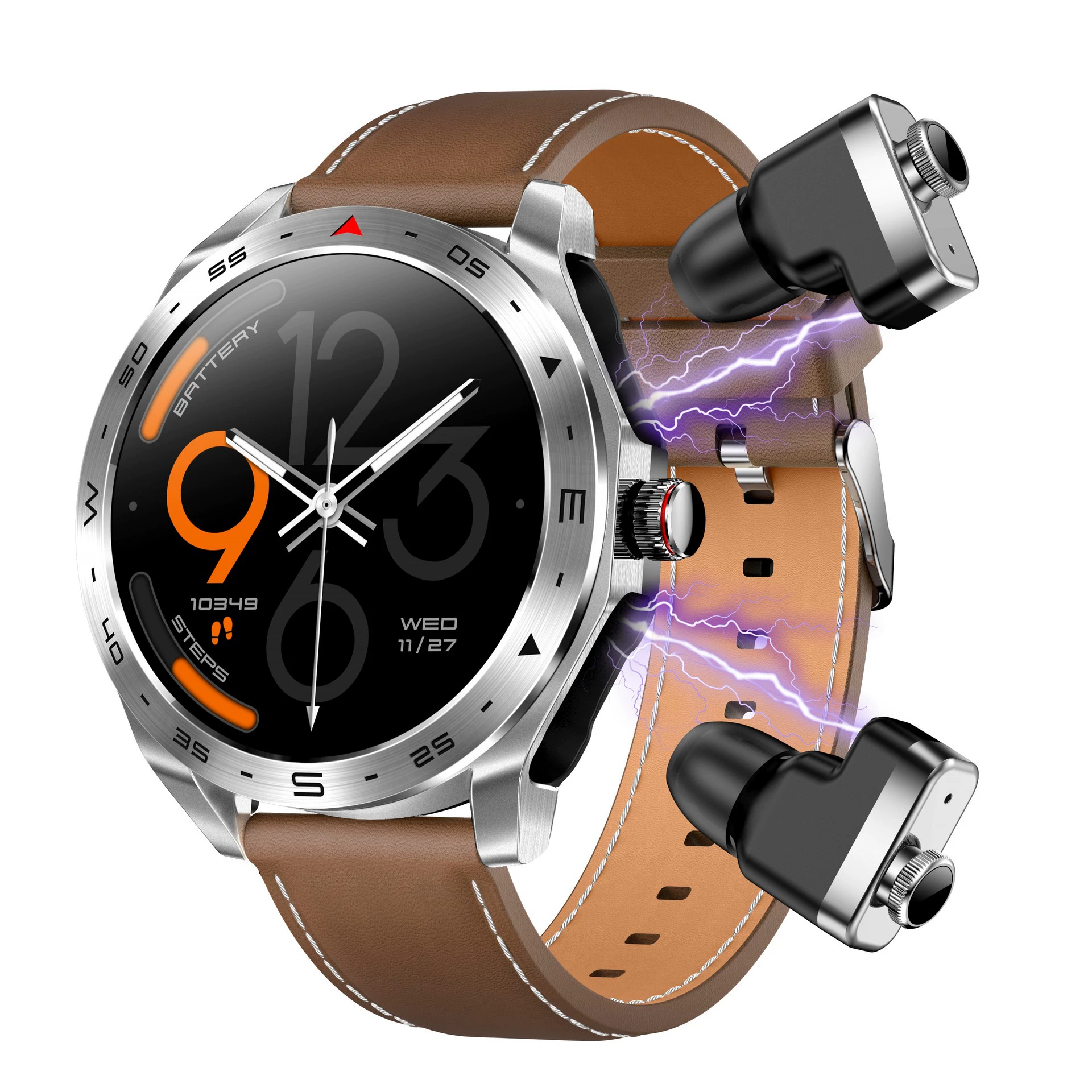 Smart Watch With Earbuds 1.52 Inch HD Round Full Touch Screen Waterproof 400mAh 2IN1 BT Call SmartWatches